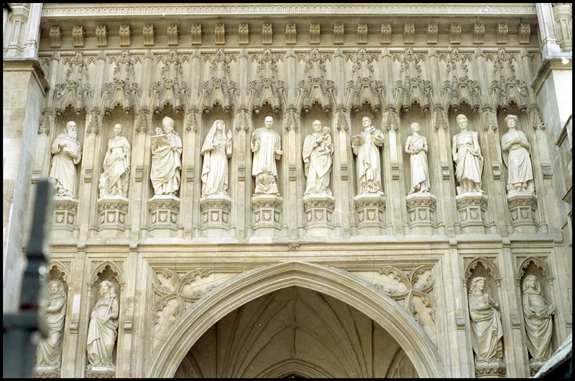 This is a photo of an entryway at Westminster Abbey. I studied art in college and our history classes were heavy on medieval churches. I loved them in the slides and even more in person. The artistry is incredible. And everything is so symbolic. There are many people actually buried there. And they still hold services. I could feel the millions of people who had passed through. The wood of the memorials and burials was worn in spots from being rubbed by so many.