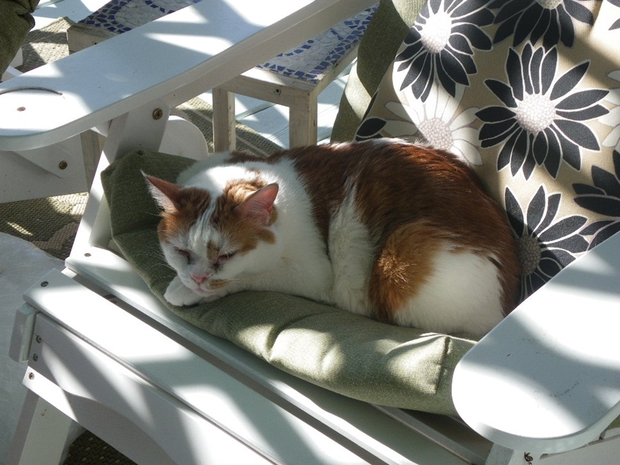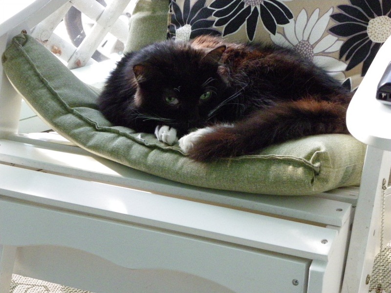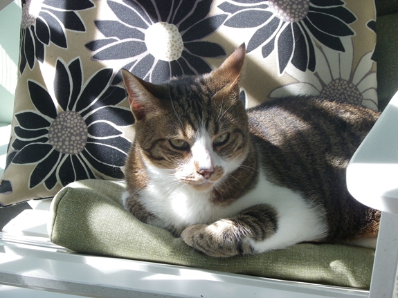 In my house, my favorite spot also happens to be the favorite spot of all the cats. Here are pics of several of them, keeping me from planting my bottom in a nice sunny place.