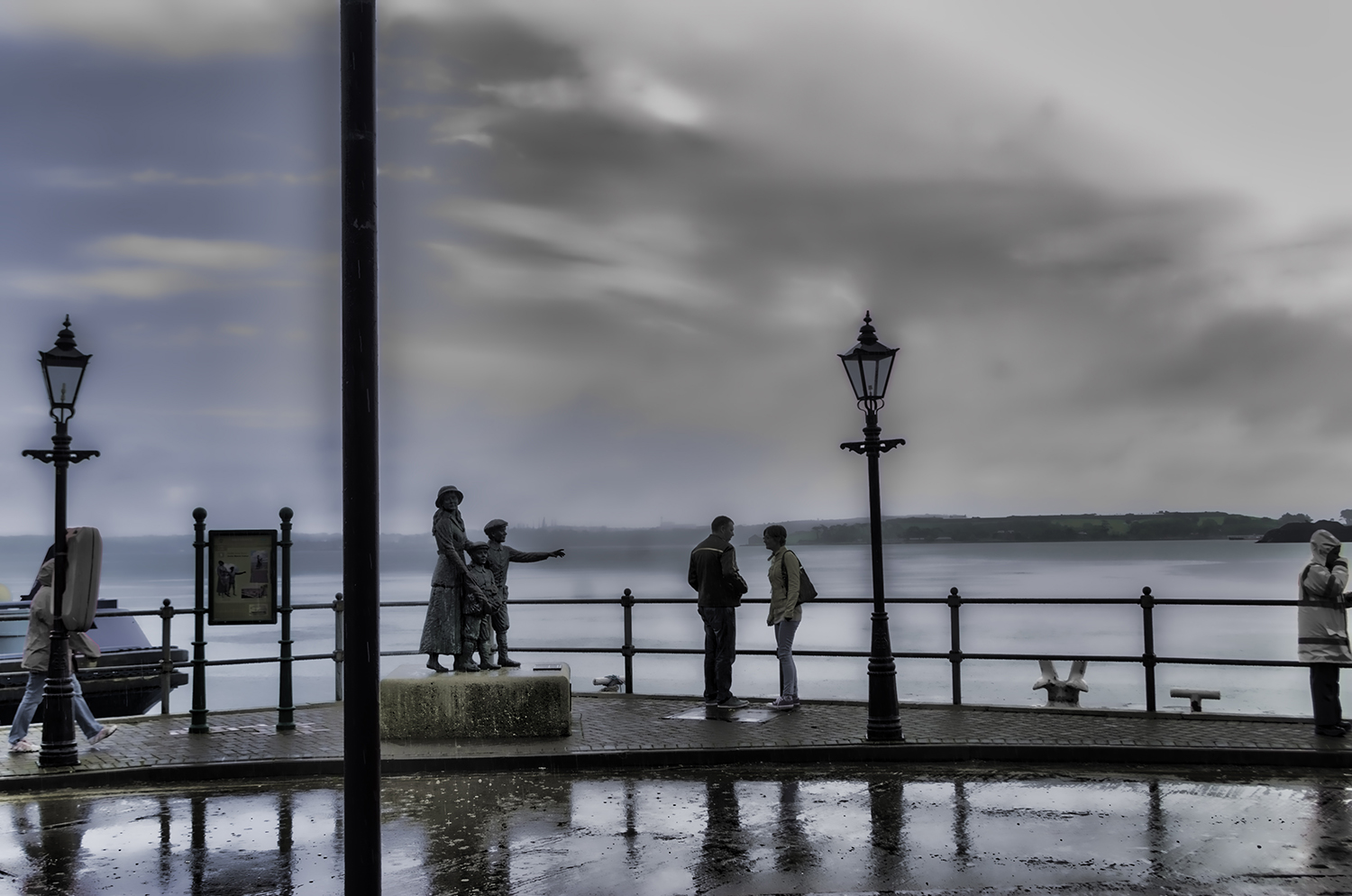 This photo was taken in Ireland. I was trying to take a photo of the statue and water beyond. People kept coming into the frame. I thought I’d take it anyway and take them out later. But these two people made this a whole different story. Someone actually asked me if I asked them to stand there like that.