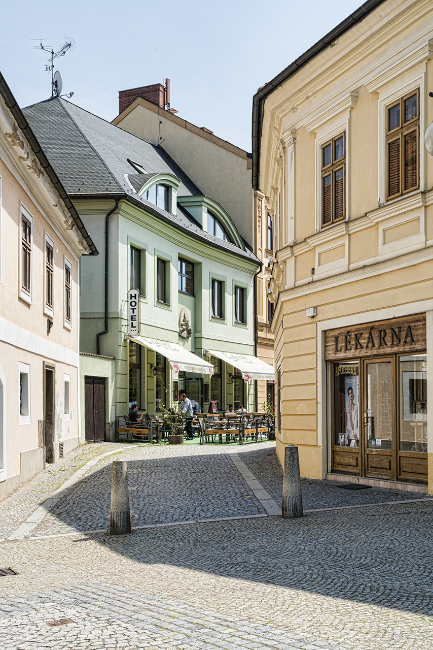 Just around the corner is the cafe. A few people are hanging out at this outdoor cafe. The people give a sense of life and movement to this photo. While it would be a perfectly fine photo without people, the people add depth to it and pull you in.