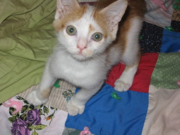 We had recently lost one of our cats to a neighbor’s dog. So, we went from 4 to 3 cats. We thought it would be a good idea to foster a cat or two from the shelter. But were trying to make up our minds. It seemed like such a big deal to get another cat at the time. Now, it seems like a no brainer. While we were trying to make up our minds, a friend called and told me that she had this kitten that needed a home. Again, we were like nope, no kittens. But in the end, decided to foster him until we could get him a home. We found a lady who wanted him almost immediately. So we took him over. But he was very much a kitten and was just too much for her. But by that time, we had brought home an adult cat from the shelter. I remember being so worried that my husband would get mad that I had brought 2 new cats into the house. But turns out, he’s a bigger sap than me about animals. We were supposed to be fostering. We are shitty fosters. We fail just about every time! The cool thing was the adult cat, Meadow, played Momma to this crazy kitten and she kept him in line. She would hold him down with one big paw and clean him from one end to the other. He’d be fighting and screaming the whole time.