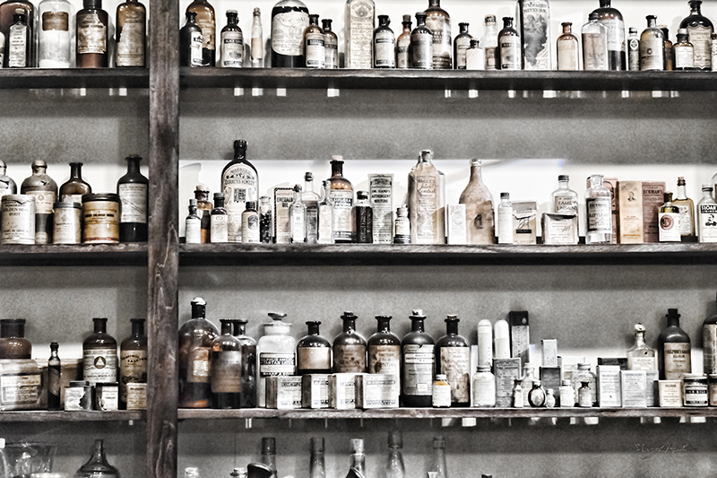 Apothecary bottles on shelf 7330 sm