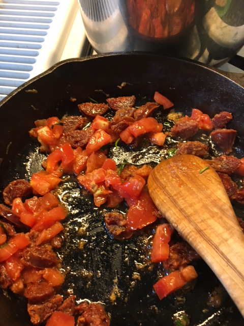Sauteing of the vegetables. I did not include the onion. Because we also do not eat onions.