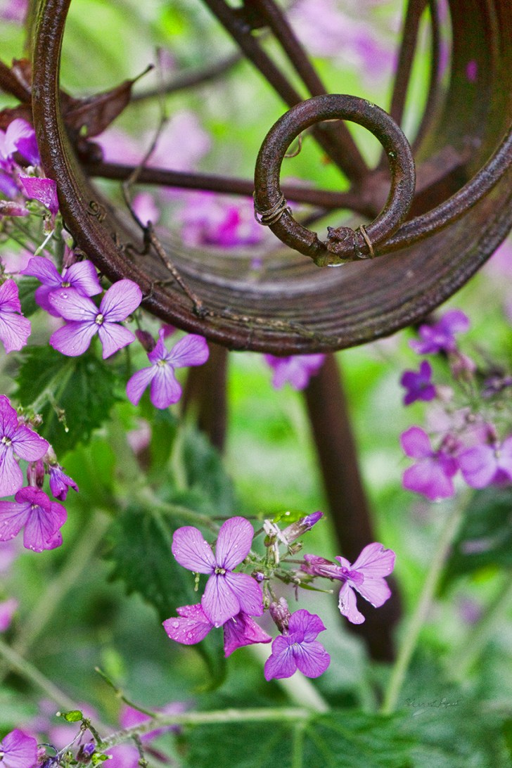 A circle of rust in spring flowers.