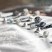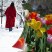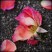 The soft petals and the metal keys stand out against the texture of the concrete.