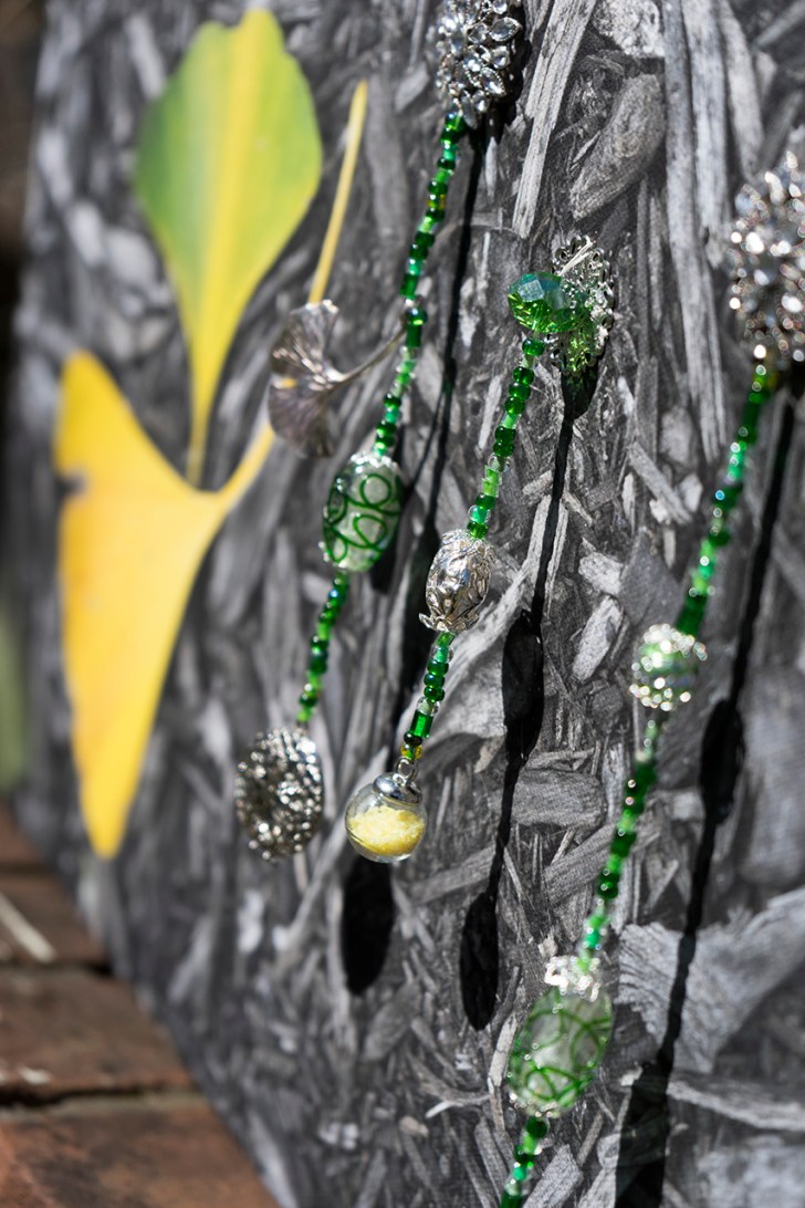 Gingkos with dangling beads and silver gingko leaves
